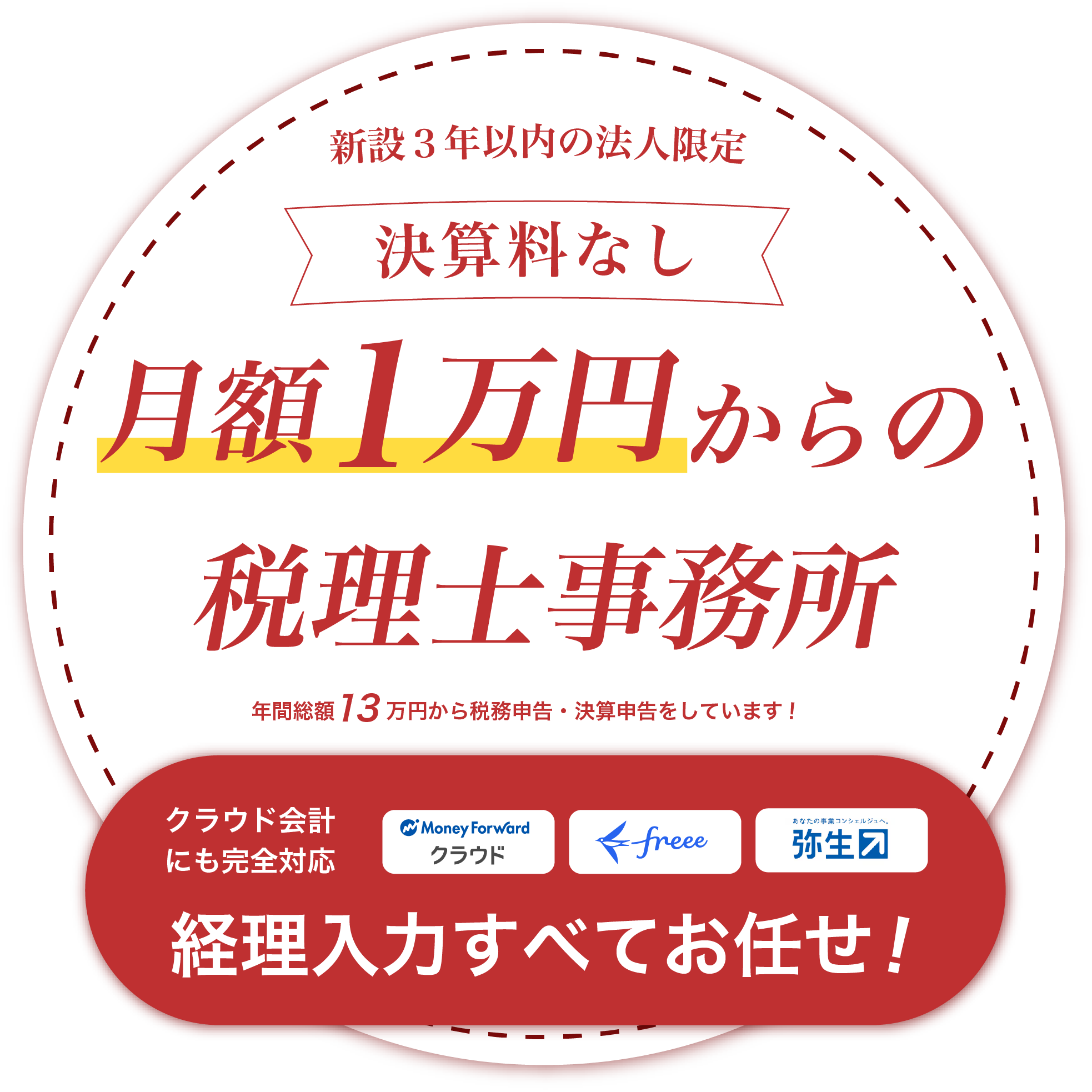 - 他の会社を経営・所有されている方、年収5百万円以上、または、資産5百万円以上の方は月額1.5万円・決算10万円以上の料金となります。